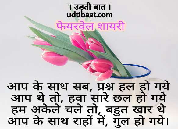 फेयरवेल शायरी – विदाई शायरी की श्रृंखला में यह आर्टिकल फेयरवेल शायरी ( Farewell shayari ) पार्ट 2 आपके समक्ष प्रस्तुत है। लगभग सभी कॉलेज, स्कूल्स, कंपनीज़ और विभागों में सीनियर्स का retirement अथवा transfer होते रहते हैं। पुराने वरिष्ठों से आत्मीय लगाव स्वाभाविक होता है इसलिए उनका विछोह तकलीफ देह लगने लगता है। इसी आत्मीयता, प्रेम और सम्मान के कारण हम अपने सीनियर्स को सम्मानजनक विदाई देना चाहते हैं। ऐसे अवसरों पर या तो कोई विदाई समारोह का आयोजन किया जाता है अथवा हम उनको व्यक्तिगत रूप से मिलकर ग्रीटिंग उपहार स्मृति चिन्ह देकर अपना लगाव प्रकट कर देते हैं। ऐसे अवसर के लिये हमेँ अपने दिल के ज़ज़्बात बयां करने के लिये सही शब्दों की आवश्यकता होती है। और निर्विवाद रूप से वो शब्द अगर पंक्तिमय हों तो इससे बेहतर बात नहीं हो सकती इसीलिये फेयरवेल शायरी ( Farewell shayari ), फेयरवेल कोट्स , फेयरवेल कविता , फेयरवेल वचन , vidai shayari , विदाई संदेश, फेयरवेल मैसेज या सेवानिवृत्ति शायरी की आवश्यकता हमें पड़ती रहती है। आशा है कि आपको यह आर्टिकल मदद करने में सहायक होगा।