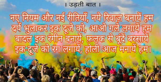 -गुलालों की बात आयी है दोस्तो तो मैं चाहता हूँ कि पूरा वातावरण रंगीन होना चाहिये। मुझे क़ुछ शाही चेहरे अभी भी साफ़ सुथरे दिखाई दे रहे हैं।